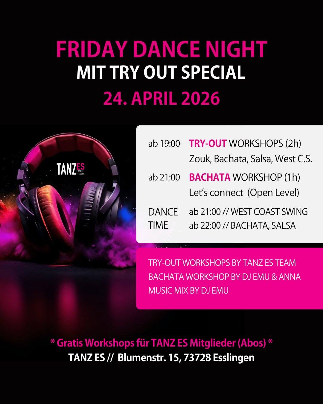 !! GRATIS WORKSHOPS für TANZ ES Abo-Mitglieder !!