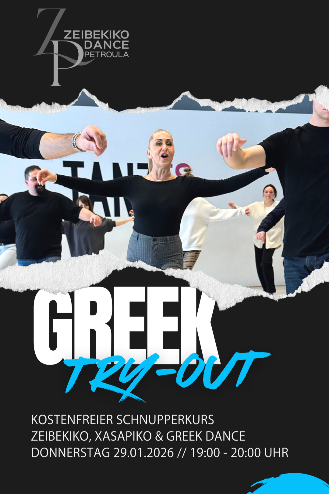 Abgerundet wird die Schnupperstunde durch Elemente aus dem Greek Dance, der Tradition, Gemeinschaft und Lebensfreude verbindet.