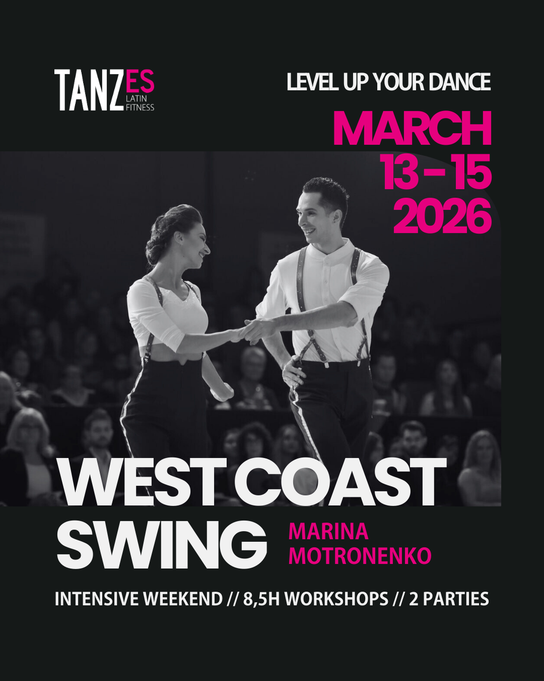 In unserem „Level up your Dance“ West Coast Swing Wochenende dreht sich alles darum, dein Tanzen gezielt und nachhaltig auf das nächste Level zu bringen. In einem intensiven Training arbeiten wir an Technik und Musikalität. Wir erweitern dein tänzerisches Vokabular und integrieren neue Figuren, die du direkt in deinen Tanz einbauen kannst.